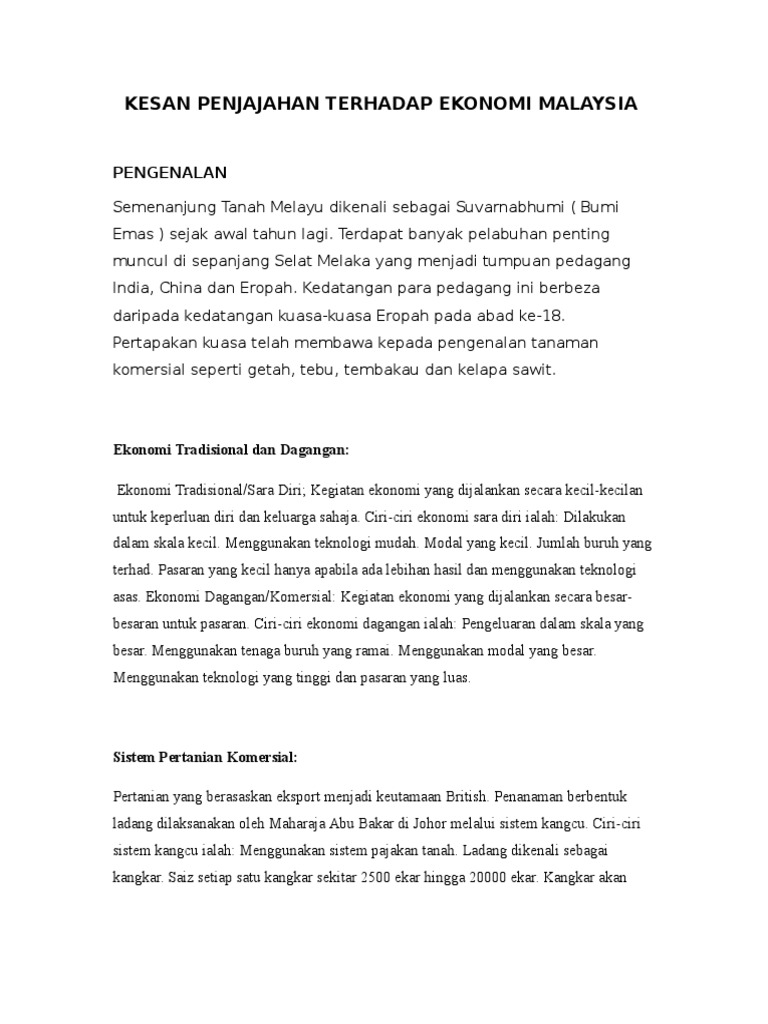 Kesan Penjajahan Terhadap Ekonomi Malaysia Pdf