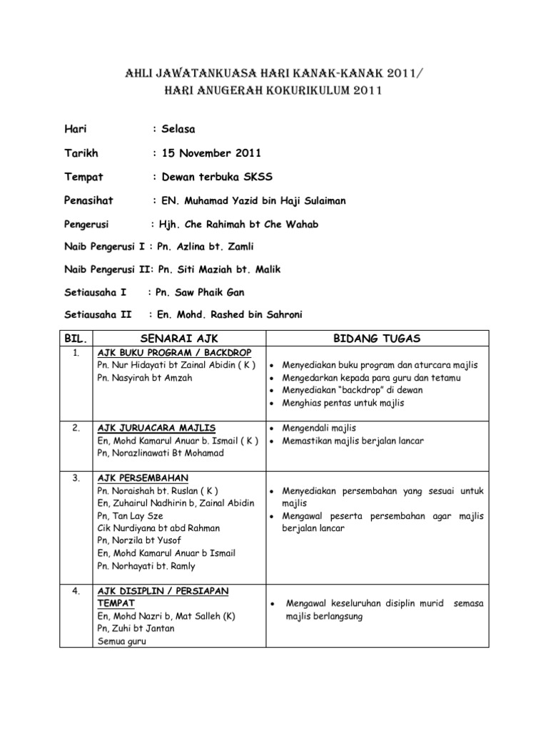 Pemberitahuan peranan dan senarai tugas ahli jawatankuasa kelab rukun. Penolong Kanan Kokurikulum In English. Senarai Tugas Jawatankuasa - Laman Web Rasmi.