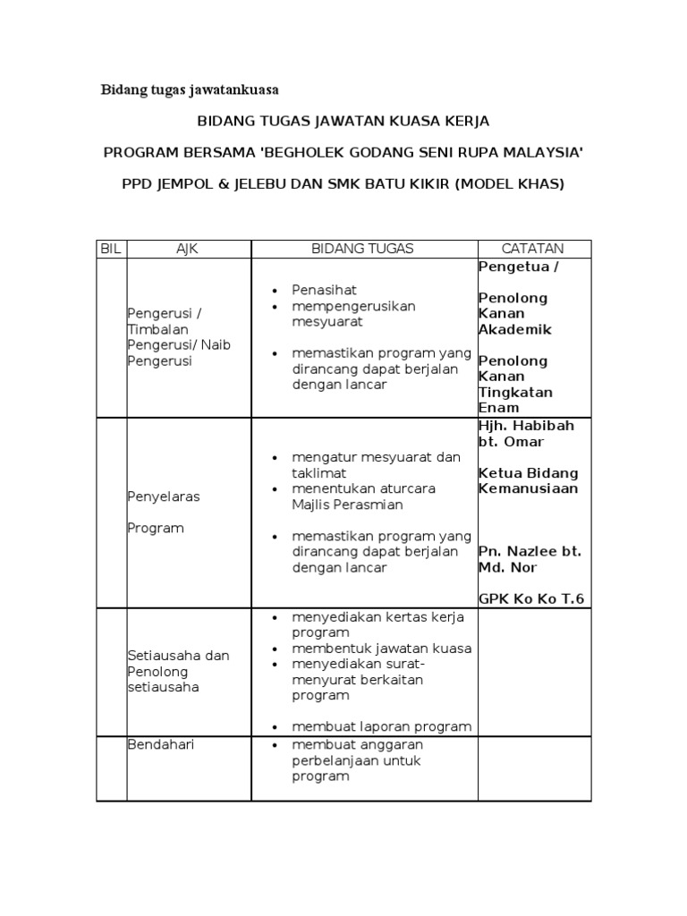 Pengarah Pengerusi Bertanggungjawab dalam menguruskan pentadbiran kewangan dan aktiviti. Jawatan Kuasa Atau Jawatankuasa Terdapat 13 Arti Kata Jawatankuasa Di. PANDUAN SENARAI TUGAS JAWATANKUASA KERJA PERTANDINGAN PERINGKAT DAERAH DAN NEGERI1.