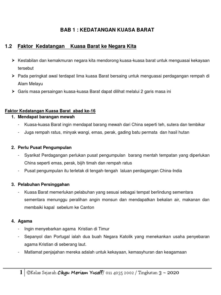 1 Kelas Sejarah Cikgu Meriam Yusoff 011 4035 2002 Tingkatan 3 2020 BAB 1. Pdf Soalan 3 Jelaskan Faktor Faktor Penjajahan Kuasa Asing Di Tanah Melayu Hadijah Johari Academia Edu. Sejarah Tingkatan 3 Bab 1.
